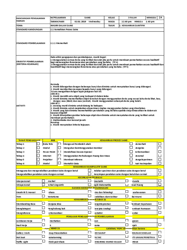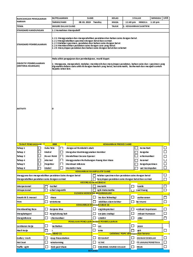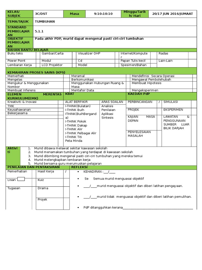 RPH Dunia Sains Dan Teknologi Tahun 3. Kini ia telah berada di Drive anda anda boleh edit untuk memasukkan data seperti sekolah kelas dan masa. Tarikh Hari dan Masa.